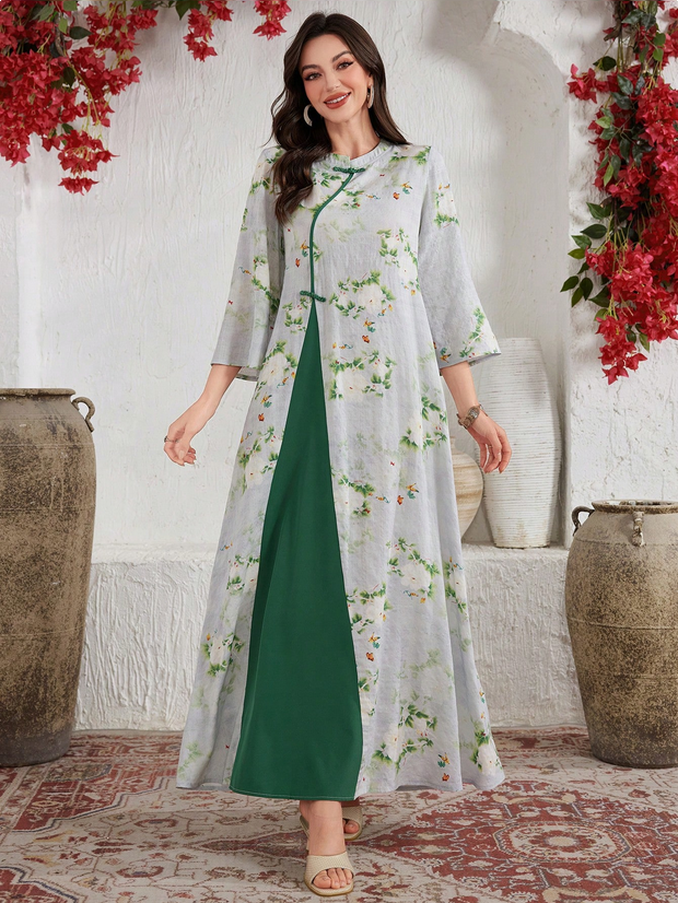 فستان شيونغسام المعدل بتباين الألوان