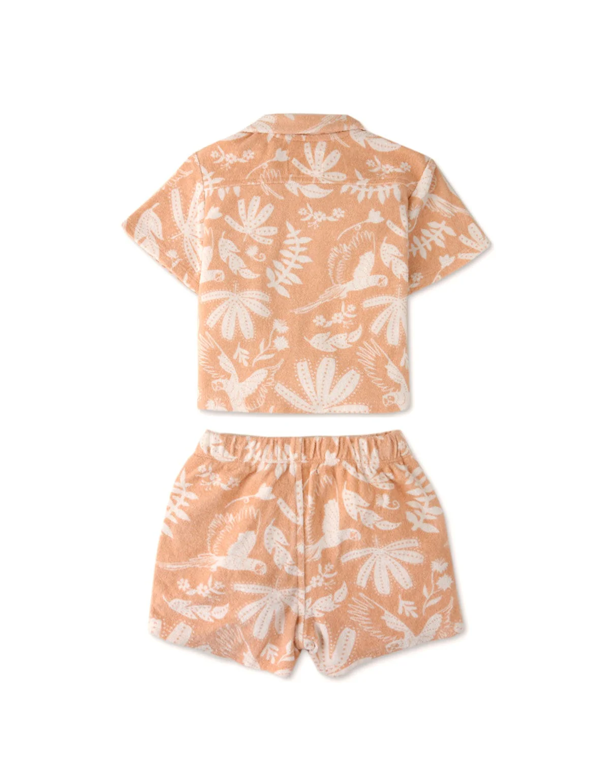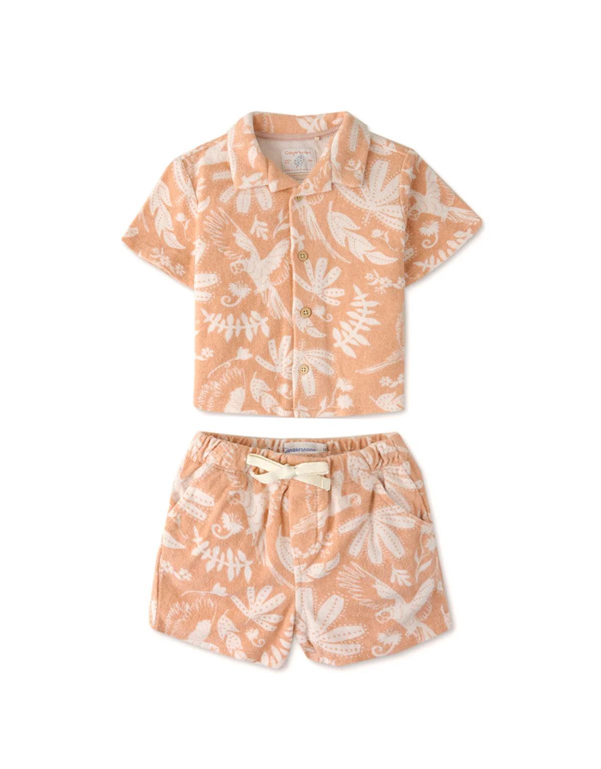 يأتي الطقم بتصميم عملي يجمع بين سهولة اللبس ومرونة الحركة. يمكن ارتداء القميص والشورت بسهولة، مما يسمح للأم والأب بتجهيز الطفل بسرعة دون أي عناء. كما يضم الطقم تفاصيل أنيقة، كالطبعات الملونة على القميص والتصميم البسيط للشورت، لإضفاء لمسات جذابة تناسب أذواق الأطفال وعائلاتهم.