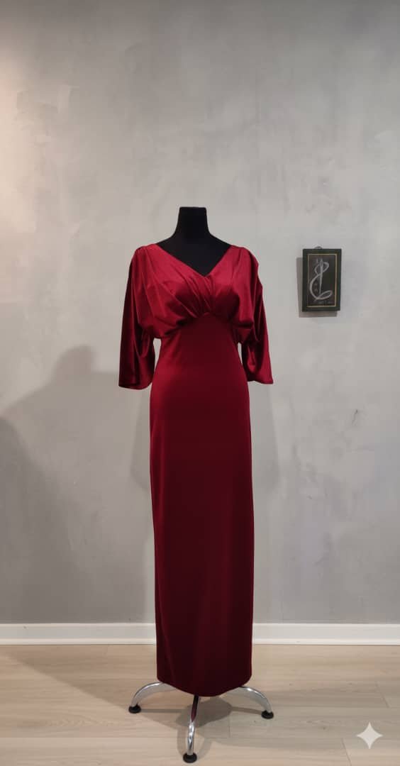 هذا الفستان صُمم بتفاصيل دقيقة ليضمن لكِ إطلالة مثالية. خطوطه المنسقة وقصته الانسيابية تبرز أنوثتك وتحسن من تناسق شكل الجسم. يتميز أيضًا بتصميم أنيق في منطقة الخصر ليلفت الأنظار ويبرز جمالك الطبيعي. الألوان العميقة والراقية تضيف لمسة من الرقي والفخامة، مما يجعله مناسبًا لكل المناسبات المسائية.