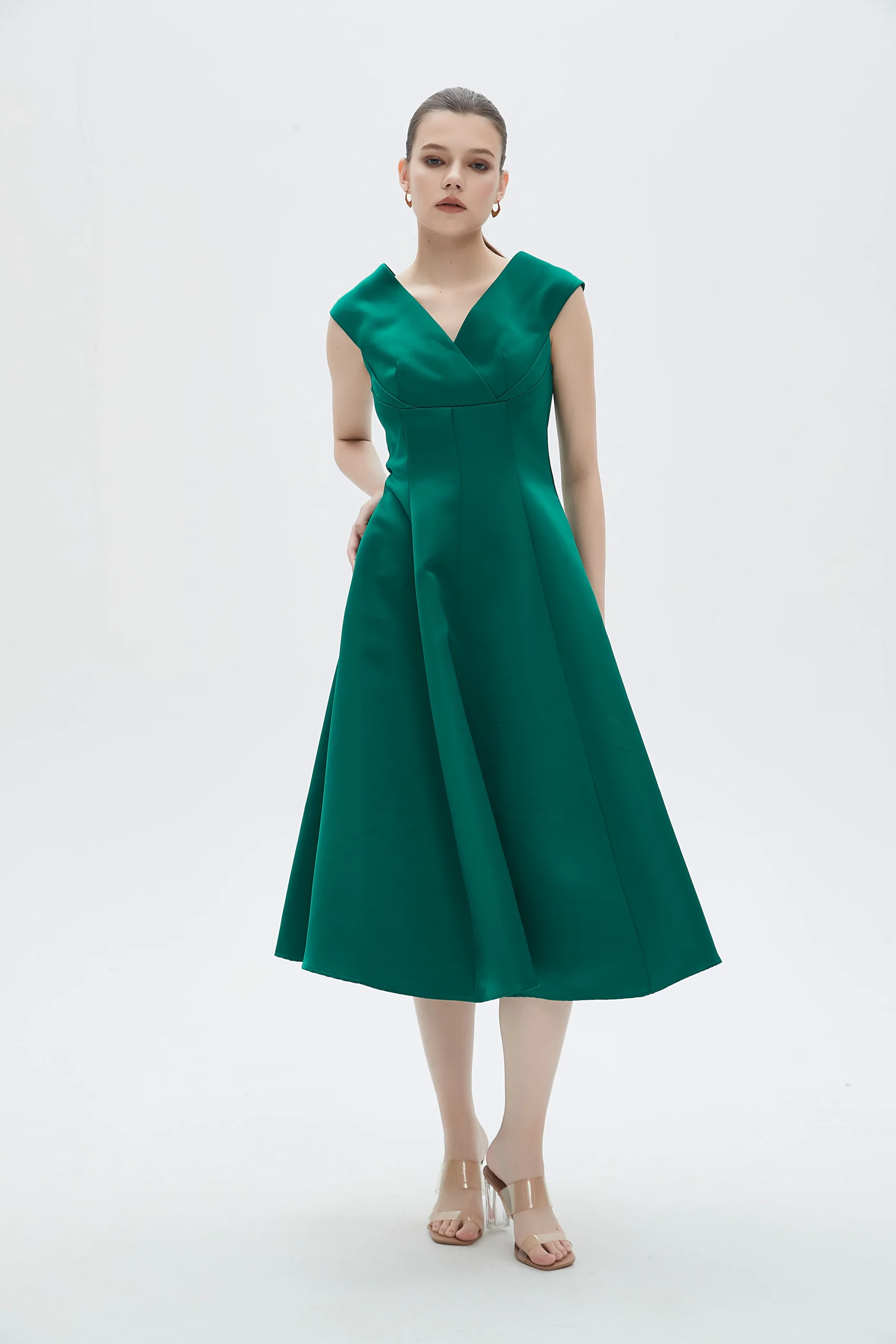 يجمع فستان ميدي نسائي سادة بدون أكمام بين البساطة والأناقة لتوفير قطعة ملابس أنثوية مثالية تناسب كافة المناسبات